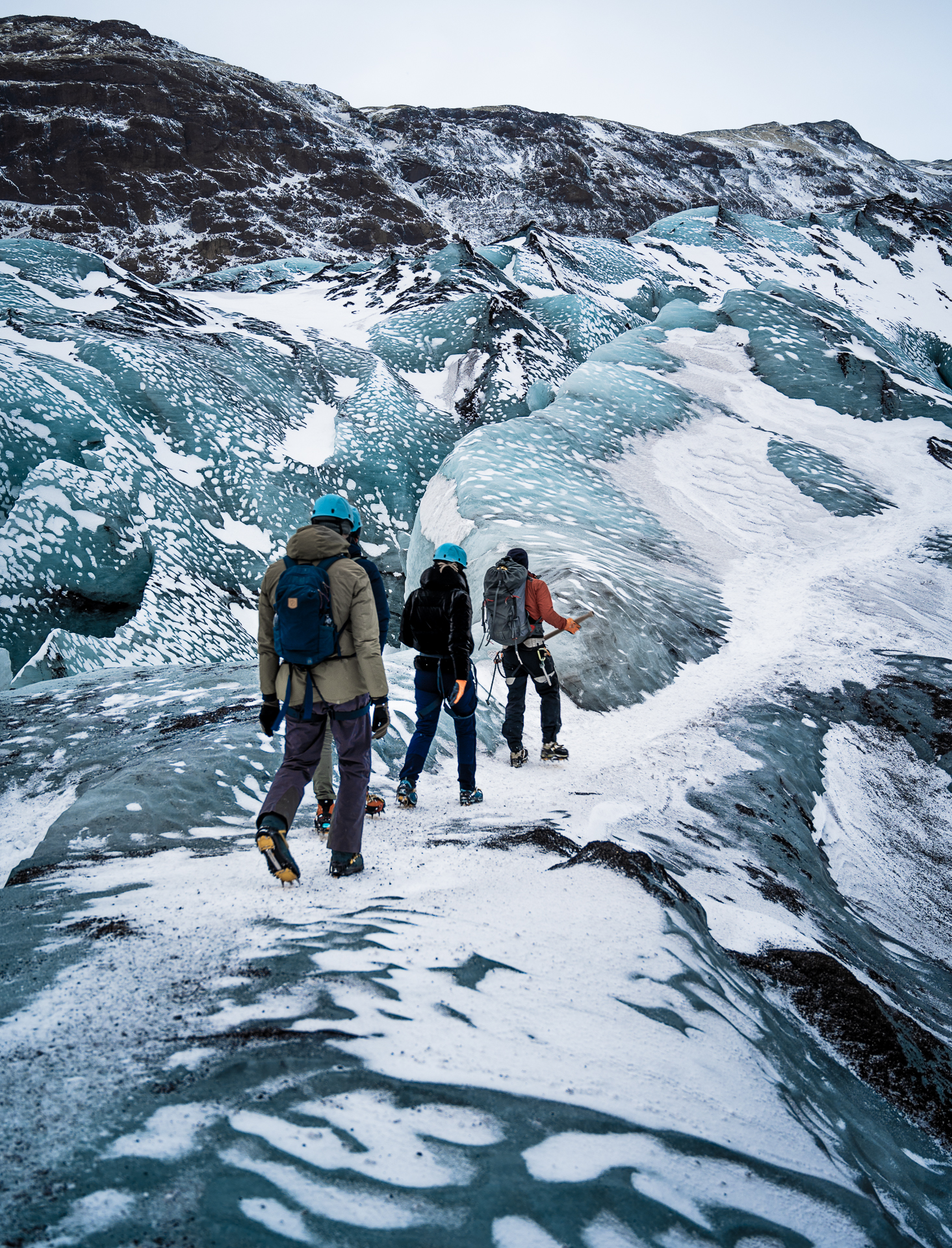 Like all true outdoor adventures, navigating the glacier can be challenging, but highly rewarding. Our attentive guides will ensure our guests feel secure, while encouraging them to push their limits and embrace the odyssey through Sólheimajökull. We want to deliver the moment and create an unforgettable experience.